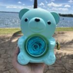Urso com Rosa Real e Colar de Dois Corações Personalizáveis – Um Presente Inesquecível