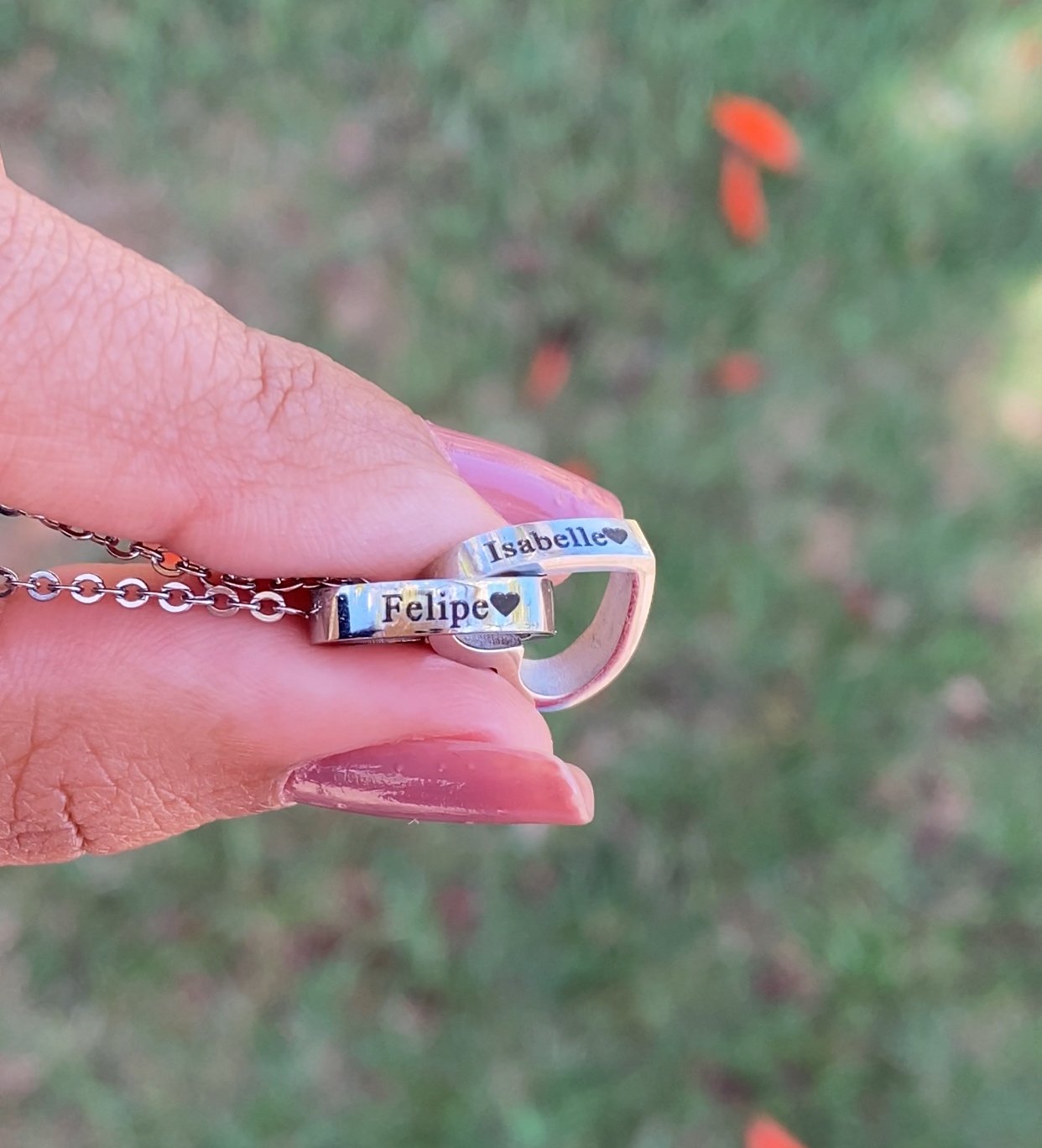Personalização: 2 nomes ou datas (até 12 letras em cada lado do colar);